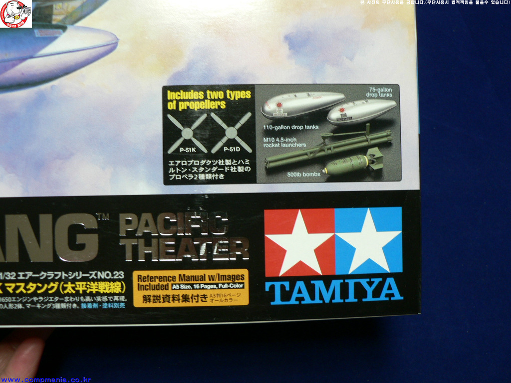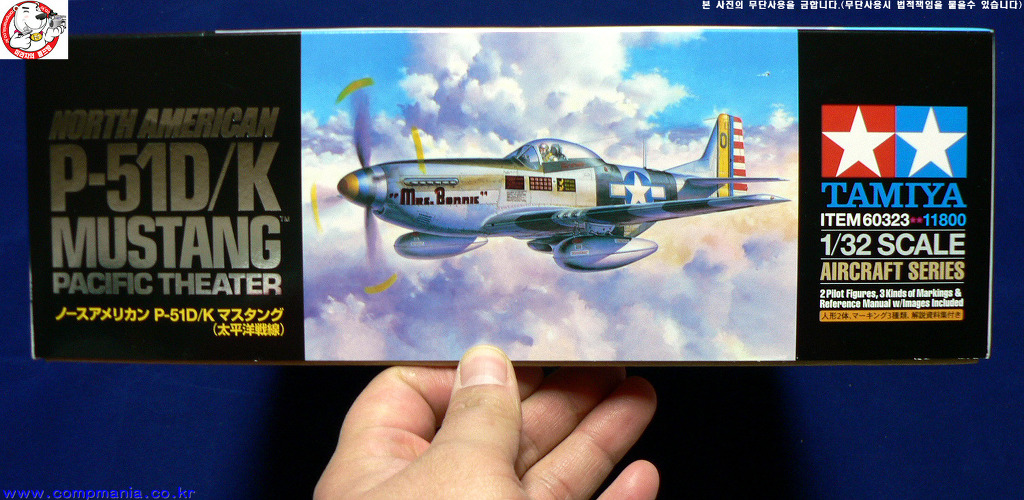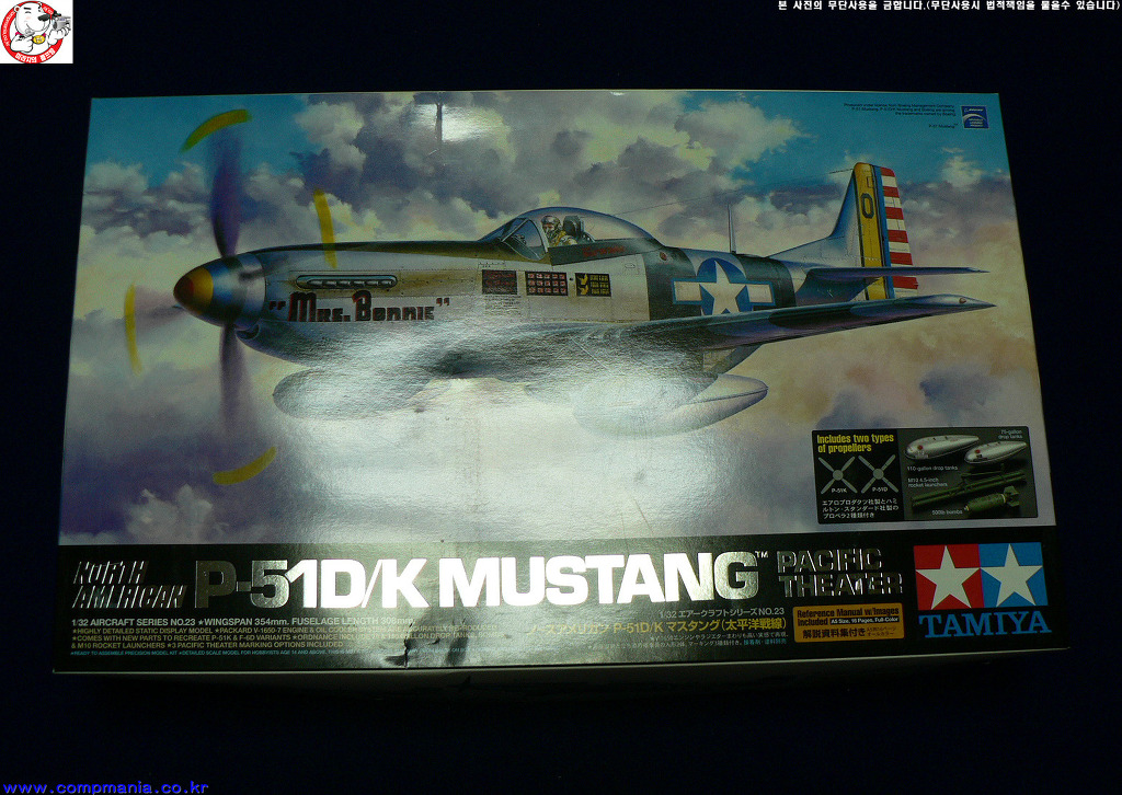 얼마전에 부탁을 하나 받은게 있습니다. 까페회원이신 무차이 님이 갑자기 비행기 제품 하나를 구매하시면서 리뷰를 부탁하신것이였습니다.그제품은 바로 얼마전 출시된 타미야의 신제품이였던 1/32 Aircraft Series No.23(6032)번 NORTH AMERICAN P-51DK MUSTANG (PACIFIC THEATER)이란 제품입니다. 요새 침체기에 빠져있긴하지만 특별한 부탁이고해서 바로 리뷰해봅니다. (이자리를 빌어 소중한 킷을 제공해주신 무차이님깨 감사의 말씀을 드립니다.)