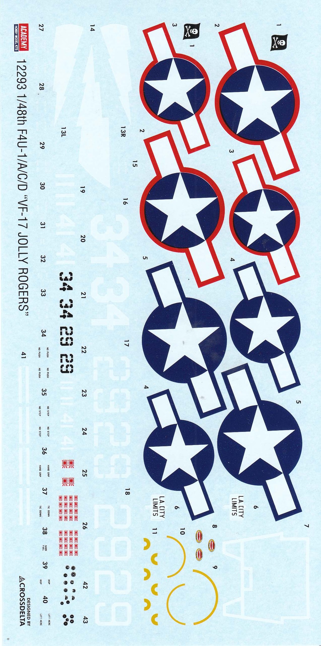 [데칼은 말이 필요없는 데칼의 황제로 불리는 이태리 카르토그라프제!! 이 데칼은 정말 사용하지 않고는 가치를 말할수 없을 정도로 품질이 끝내줍니다. 마킹은 당연 제목대로 VF-17 졸리로져 기체들을 재현하고 있습니다. 디자인은 카르토그라프 데칼을 전문적으로 디자인하는 크로스델타사가 맡아 디자인한것으로 2차대전 미해군 국적기를 정확하게 재현하고 있습니다.]