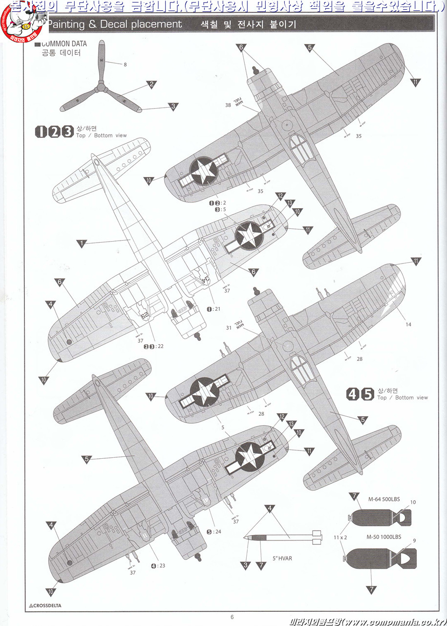 [마킹은 1943년부터 1945년까지 다양한 칼러의 5개 마킹을 재현하고 있습니다. 미해군 중기의 옅은 푸른색부터 후반의 네이비블루까지.. 이거 5대 다사야하나..??]