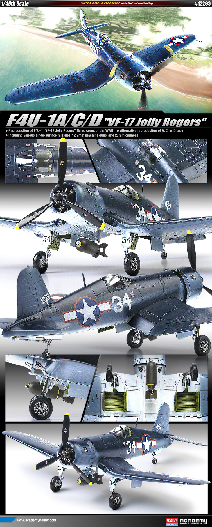 지난 3월 미리 예고했던 1/48 F-4U 코르세어 한정판 제품인 #12293번 1/48 F4U-1A/C/D 'VF-17 Jolly Rogers' 가 드디어 어제 5월2일 전격 출시되었습니다.