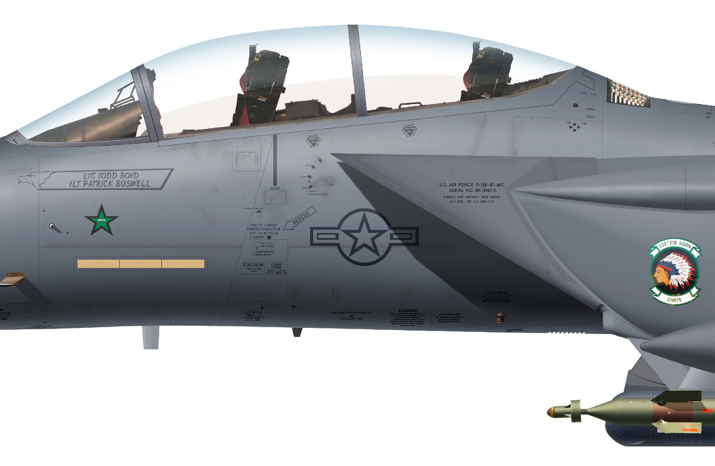 F-15E-47-MC Strike Eagle 'NYPD' s/n 89-0487 SJ 335th FS, 4th TFW assigned to LTC Todd Boyd & 1LT Patrick Boswell
