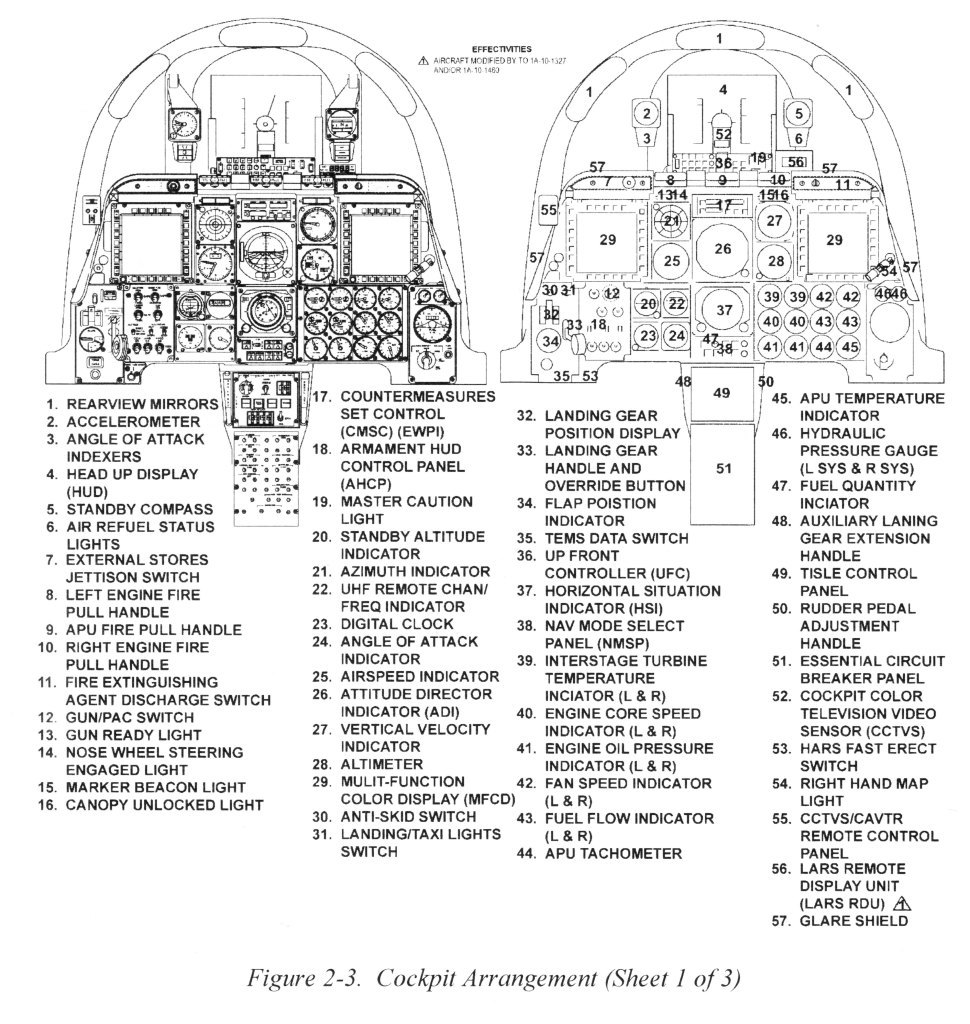 또한 걸프전에서 지적된 A-10의 문제는 구식 조종석. 이 때문에 A-10 조종사는 AGM-65 같은 유도무기를 준비하고 목표를 조준하는데 시간을 잡아 먹었으며, 종종 AGM-65 미사일을 준비하다가 너무 목표물에 가까이 접근하여 적의 대공포화 사정거리 안에 들어가는 경우가 있었다. 실제로 AGM-65를 가동할 때 일반 PC처럼 부팅시간이 필요하며, 시각 센서를 준비하는 시간이 필요하다. 이 작업을 전부 버튼의 바다에서 해야됐으니...