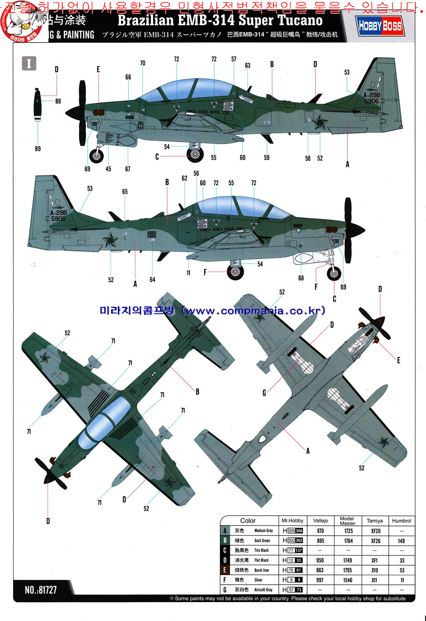 [[FREEVIEW]]Brazilian EMB-314 Super Tucano #81727 [1/48 Hobbyboss Made In China] PT3