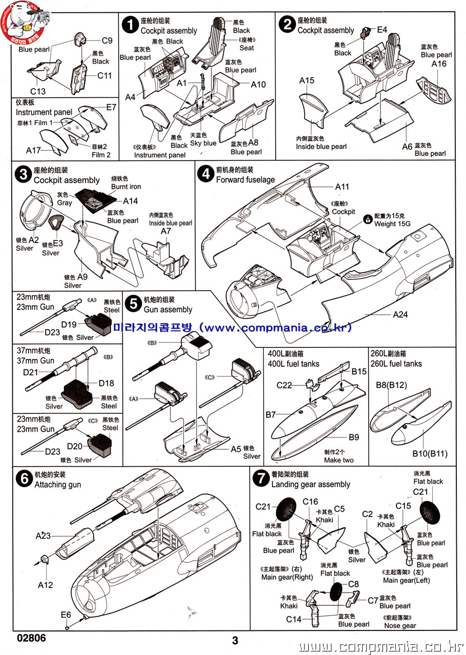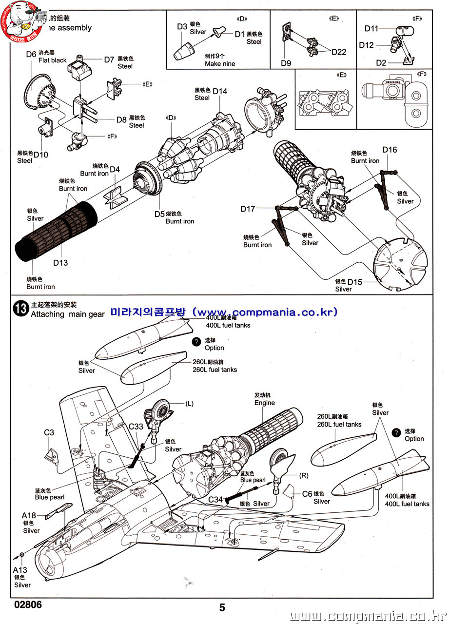 처음에 이 제품이 나올때 조잡한 박스아트와 박스상태로 크게 인정받지 못한 제품이지만 박스를 오픈해서 찬찬히 보면 1995년에 출시된 타미야 제품에 비해 결코 떨어짐이 없는 제품을 알수 있는데 타미야에 비해 진하고 (?) 잘 표현된 리벳이라던지 프로포션이나 디테일도(타미야 제품의 절반가격에)괜찮은데다가 기관포 재현에 엔진재현 그리고 수평미익의 플랩까지 분리재현되어 있는등 나중에 나온제품인만큼 타미야보다 나은부분도 있어 나중이 그 진가를 인정받은 제품이기도 합니다. (하지만 그 진가를 알았을때는 이미 제품은 절판되었지..)