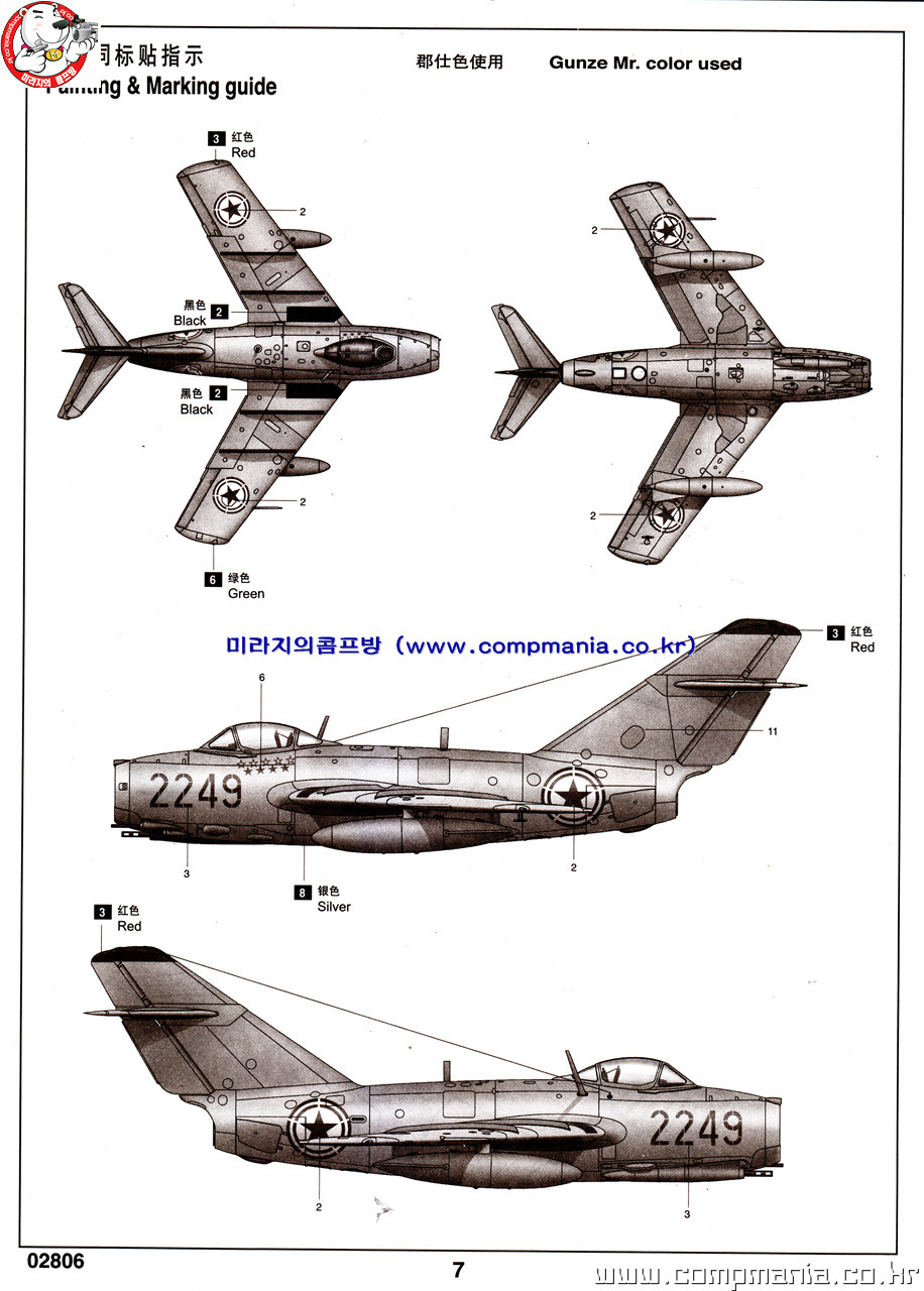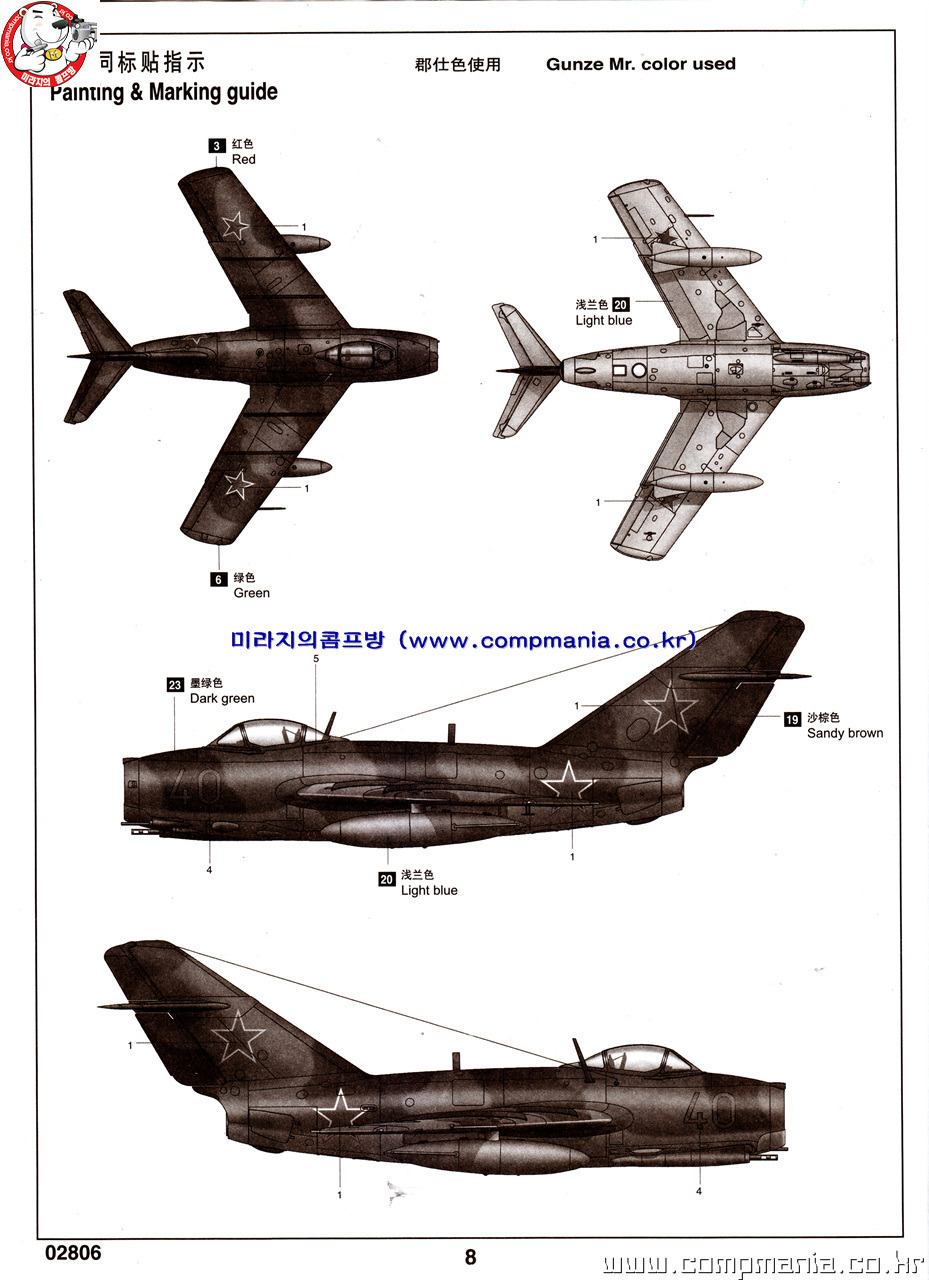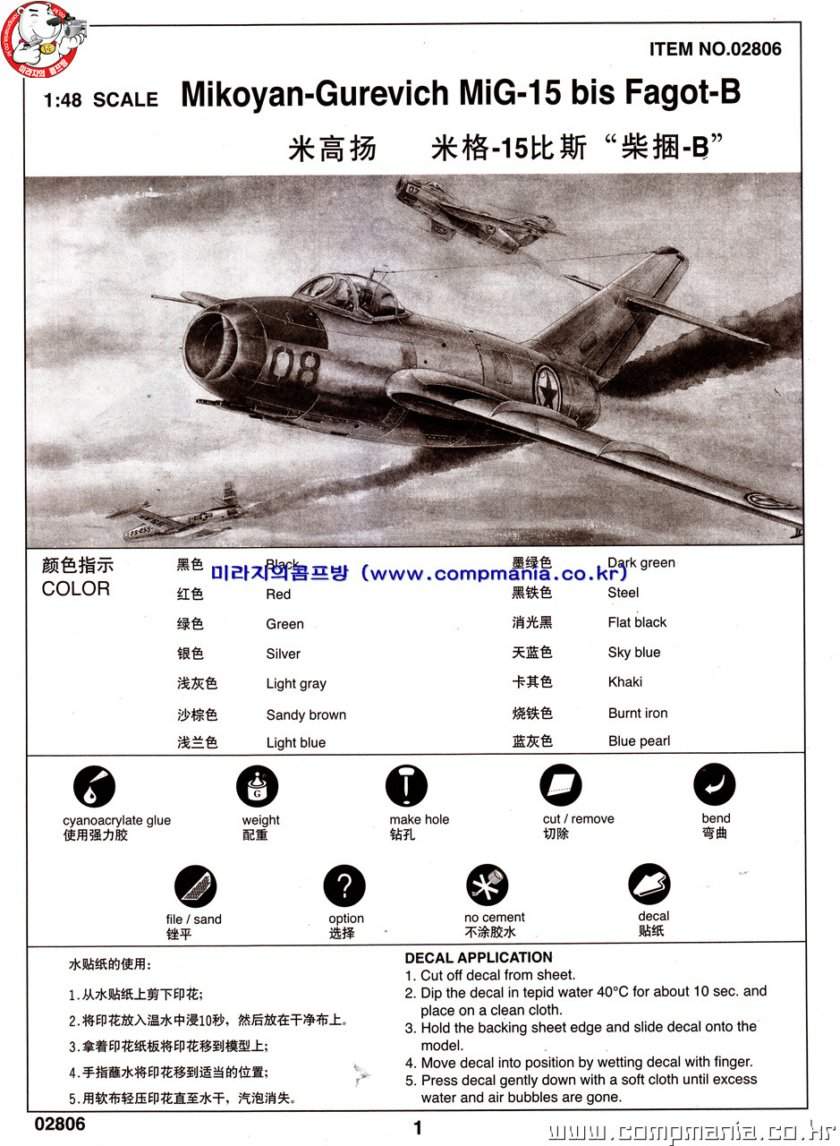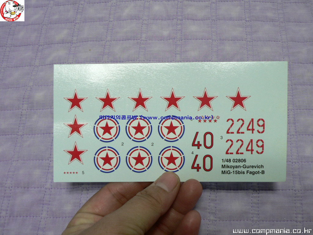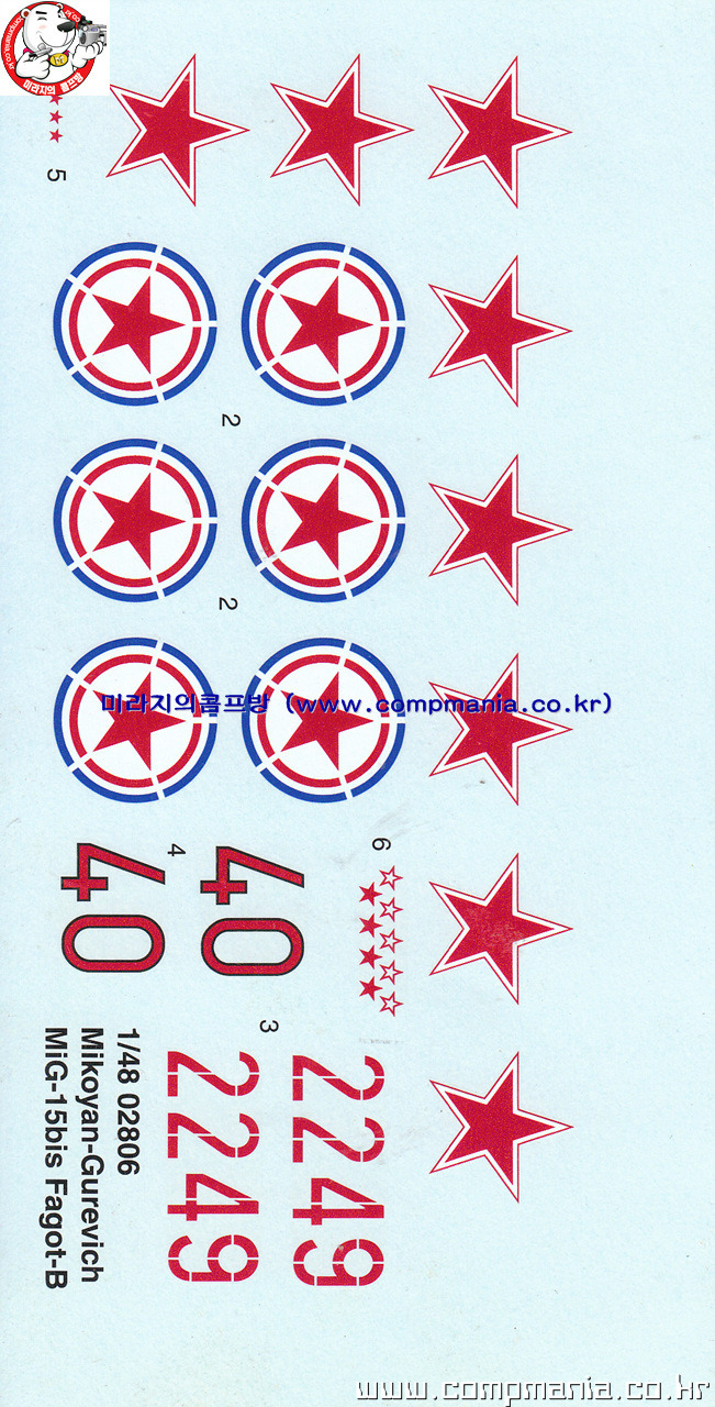 [데칼은 중국산 제품으로 품질은 그저그런 수준 접착은 그런대로 괜찮은편 이지만 붉은색의 경우 색감도 이상하고 부분적으로 얼룩이 있는등 품질이 좋은건 아니다.. 마킹은 1953년 한국전 참전 중공군과 북한군 소속 기체를 재현중]