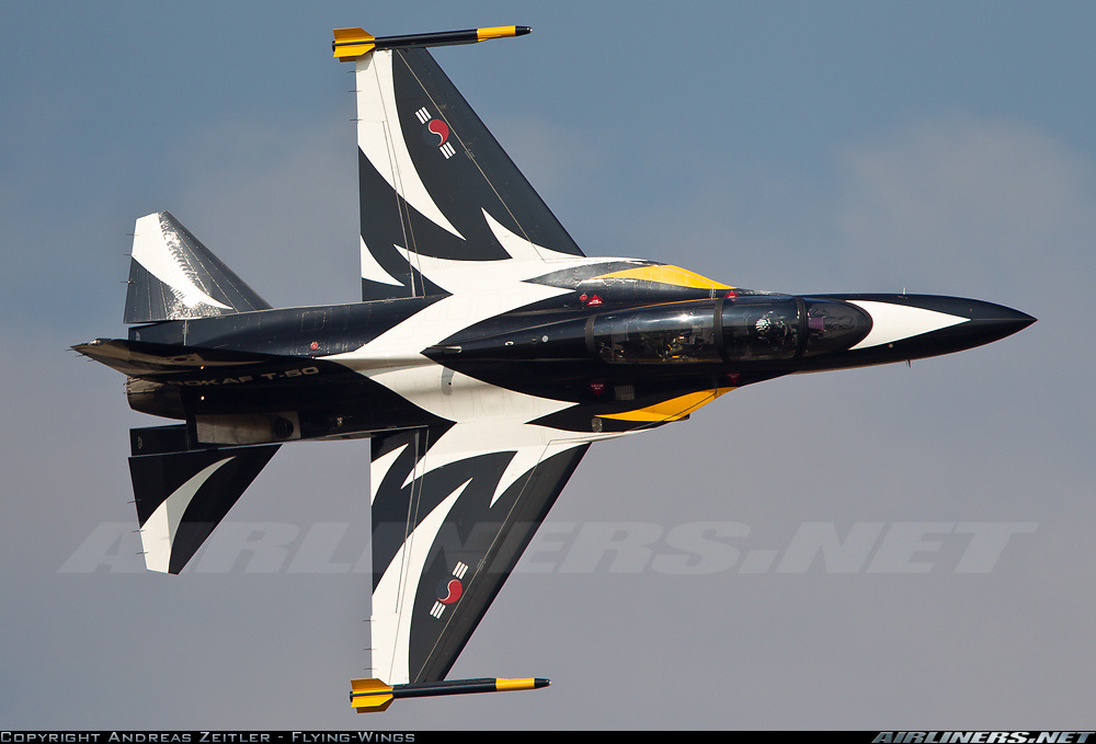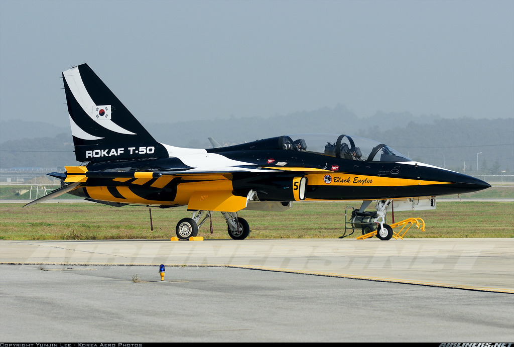 [T-50은 대한민국이 제작한 초음속 고등 훈련기이다. 2005년 10월부터 양산에 들어가, 2005년 12월에 1호기가 납품되었다.2008년 3월 25일 초도분량 25대 도입이 모두 완료되어 기존의 T-38 탤론의 역할을 대체하였으며 현재 말레이시아 도입분 까지 총 158대가 양산될 예정이다]