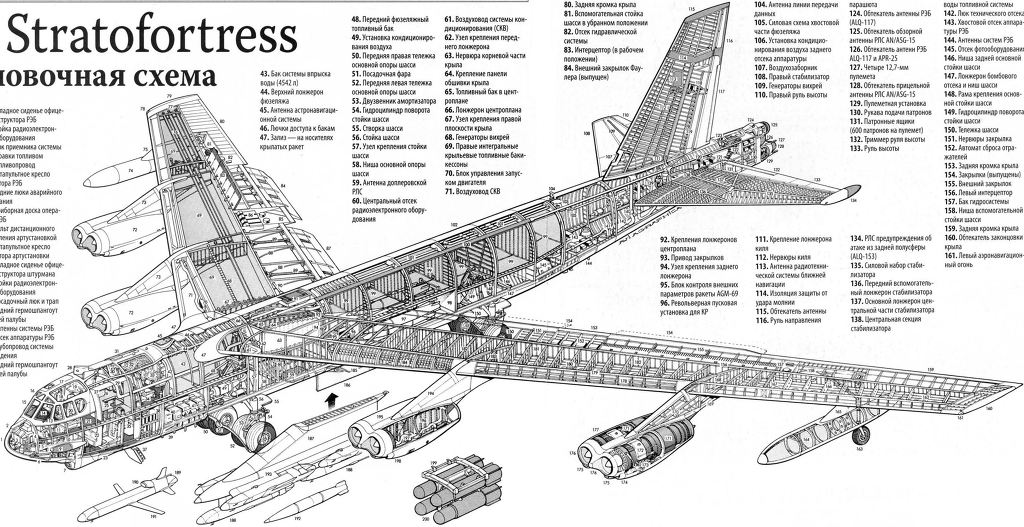 길이 : 48m 너비(주익의 길이) : 56.4m 무게 : 221.35t 폭탄 적재량:27t이상 최대항속거리 : 2만km 실용 상승한도 : 1만 8000m 최대속도 : 마하 0.95 |