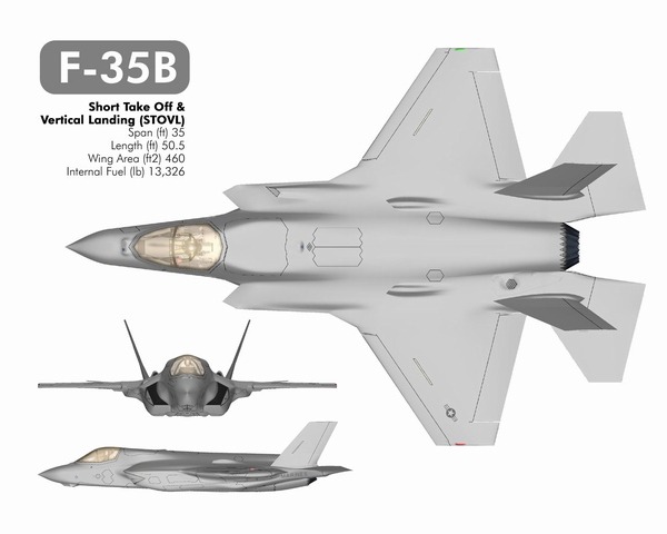 F-35B형은 미 해병대 버전이며 단거리이륙/수직착륙형(