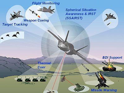 [F-35의 조종석 환경은 현존하는 어떤 전투기보다 인체공학적으로 잘 설계되어 있으며 조종사가 피로하지 않으면서 완벽한 임무를 수행할수 있도록 완벽한 디지탈 글라스콕픽을 실현하고 있다.특히 헬멧과 연동되어 모든 정보와 조준을 도와주는 DAS라는 시스템의 채용으로 360도 전방향의 적외선 화상을 HMD에 연결, 조종사는 뒤를 돌아보는 것 만으로도 후방의 적외선 카메라가 촬영한 영상을 바로 볼 수 있다. ]