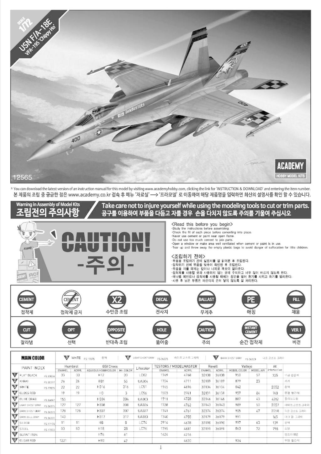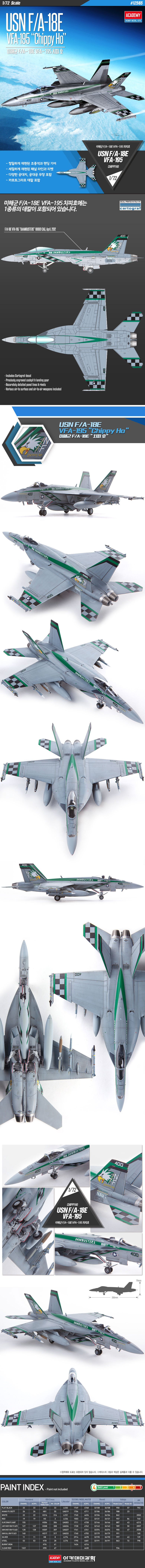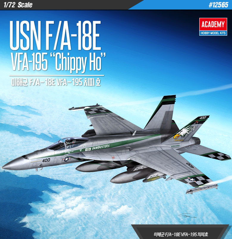 이번달에도 아카데미의 신제품 몇가지가 발매되었습니다. 이중 하나인 12565번 F/A-18E VFA-195 Chippy-Ho 제품을 소개합니다.