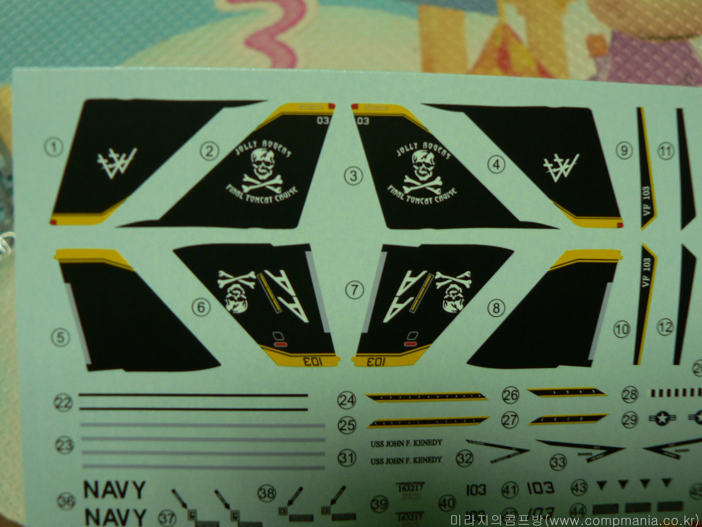 이 제품은 F-14B 톰캣과 F/A-18F 수퍼호넷 등 미해군의 전설적의 현용전투기를 재현한 제품으로 화려한 해골 마킹으로 인기가 많은 VFA-103 졸리로져를 재현한 제품 입니다.
