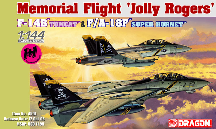 [[FREEVIEW]]Memorial Flight 'Jolly Rogers' F-14B Tomcat & FA-18F Super Hornet #4591 [1/144 DML MADE IN CHINA] PT4