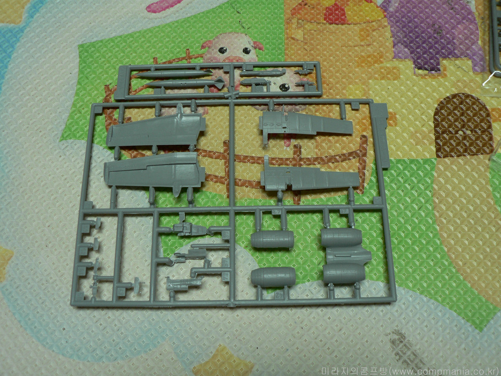 역시나 회색의 사출물로 구성되어 있습니다. 부품수는 약 140여개로 (물론 2기분) 으로 1/144 스케일 비행기 치고는 꽤 많은편 입니다.
