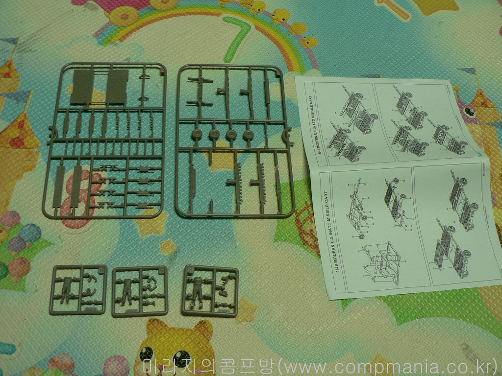 런너가 꽤 많은편인데 자세히 보면 구성은 2 x WEAPON LOADING CART with optional parts 과 3 x Figures set for AIM-9M/X Loading 구성으로 되어 있습니다. 즉 카트2개와 6명의 인형으로 구성되어 있는 제품입니다.