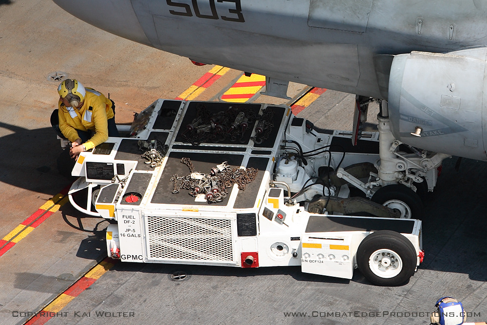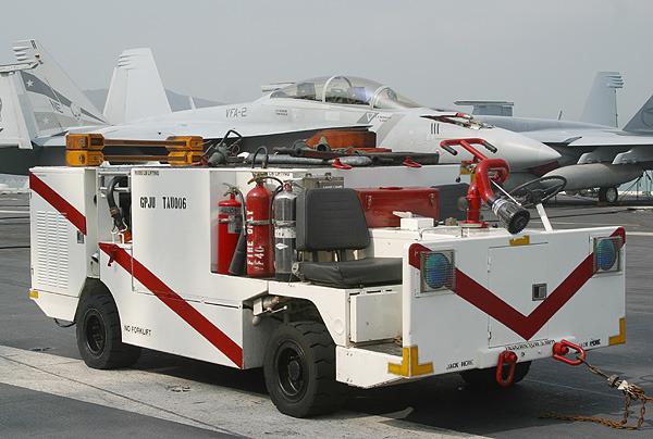 [항모에서 가장 중요한 장비중 하나가 바로 비행기들은 견인하는데 이용하는 MD-3 Navy Tractor 와 A/S32A-32 tractor 이다]