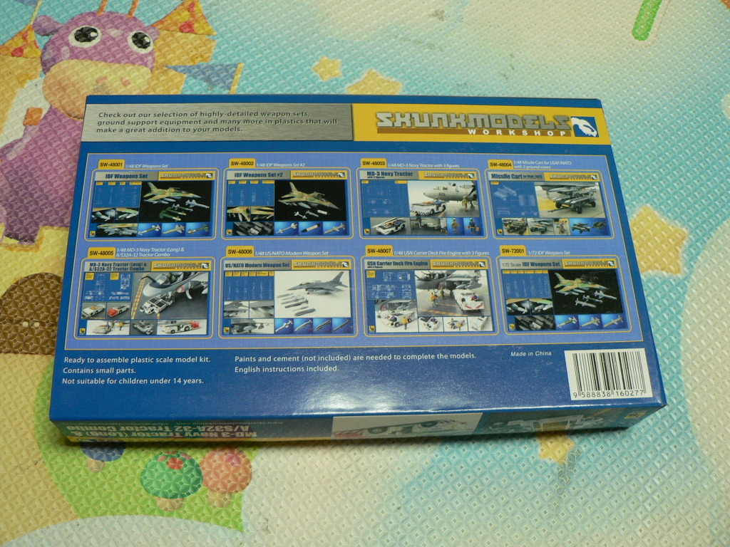 13.5x8.5x2 인치 (34x21x5 센티) 정도의 옆으로 여는 박스 타입니다. 역시 박스아트는 작례로 대신하고 있습니다. 노란색과 파란색으로 디자인인 스컹크웍스모델만의 독특한 박스 디자인이 인상적입니다.