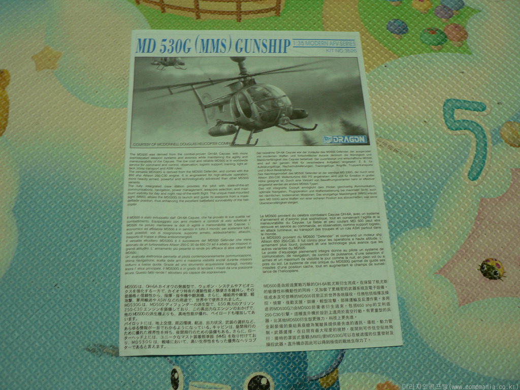 [현대적인 날렵한 느낌의 530MG 를 재현한 제품으로 유일한 1/35 스케일 제품이기도 하지만 피일럿도 없고 데칼도 없는 제품이 이번에 재판되면서 기존의 21000원 에서 4만원으로 2배 가까이 오른 가격은 이해가 안가는 부분이 있긴 합니다. 그래도 완성후 ㅡ기가 크지 않아 전차나 험비등과 비넷등으로 맞추면 딱 좋을 제품중 하나 입니다.]