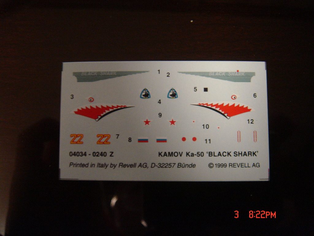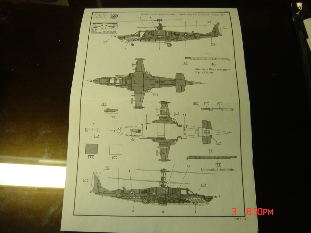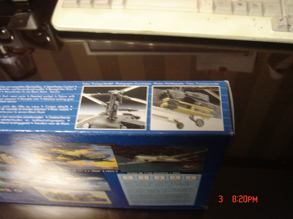 박스상단. 박력있는 Ka-50 의 일러스트와 이제 말꺼내기도 귀찮은 전통적인 레벨의 패키지 디자인. 특이점은 없습니다.