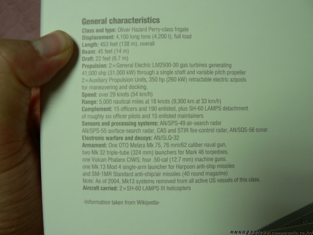 [박스한켠에는 위키미디어에서 참고한 함선 사양이 소상하게 나와 있습니다.]