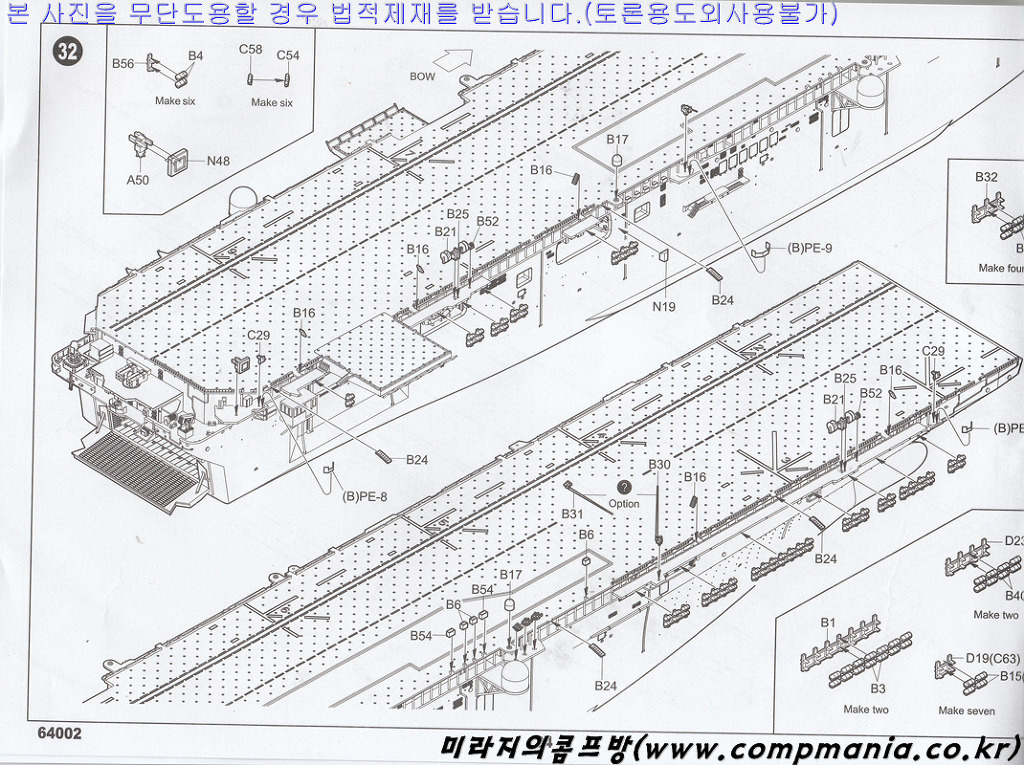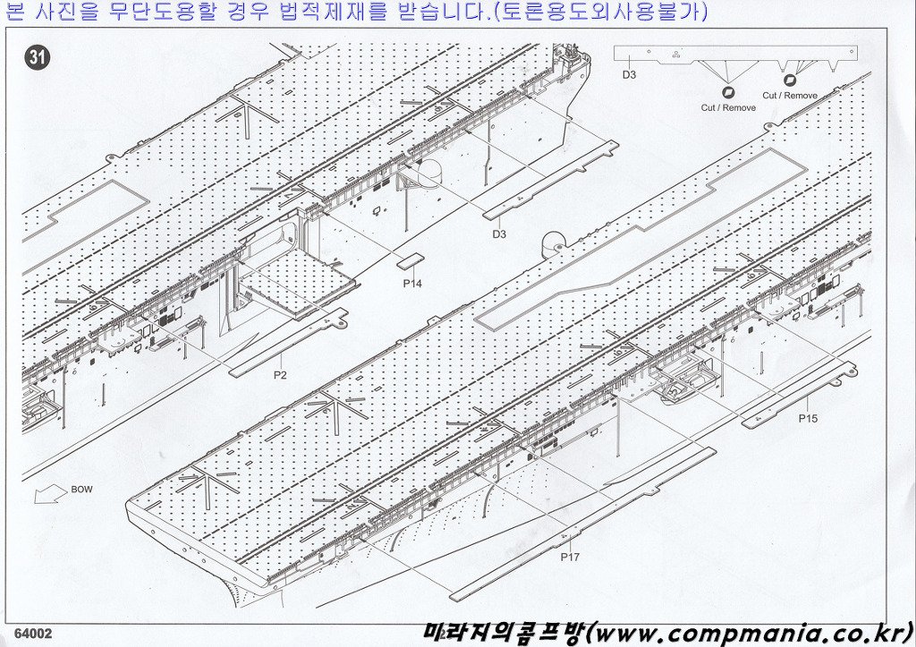 [이제품의 특징인 항모의 아기자기한 특징과 전함의 웅장함을 동시에 맞볼수 있는 제품으로 내부갑판까지 완벽하게 재현되어 있는 풀셋 제품이라는점이 장점 입니다.]