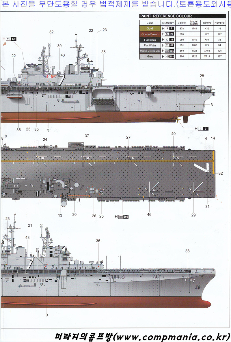 [전작인 LHD-1 WASP 급과 차이는 바로 데칼 입니다. 데칼이 달라요~~ 함교인 아일랜드에 나름 화려한 마킹이 있는점이 틀립니다 ]