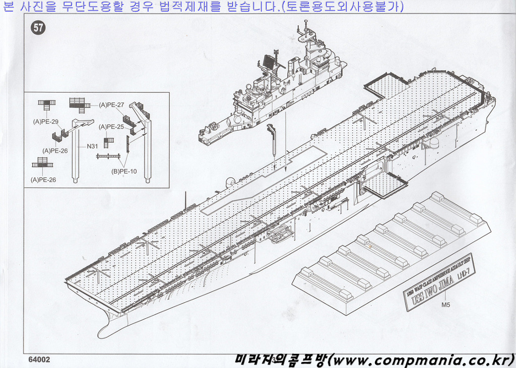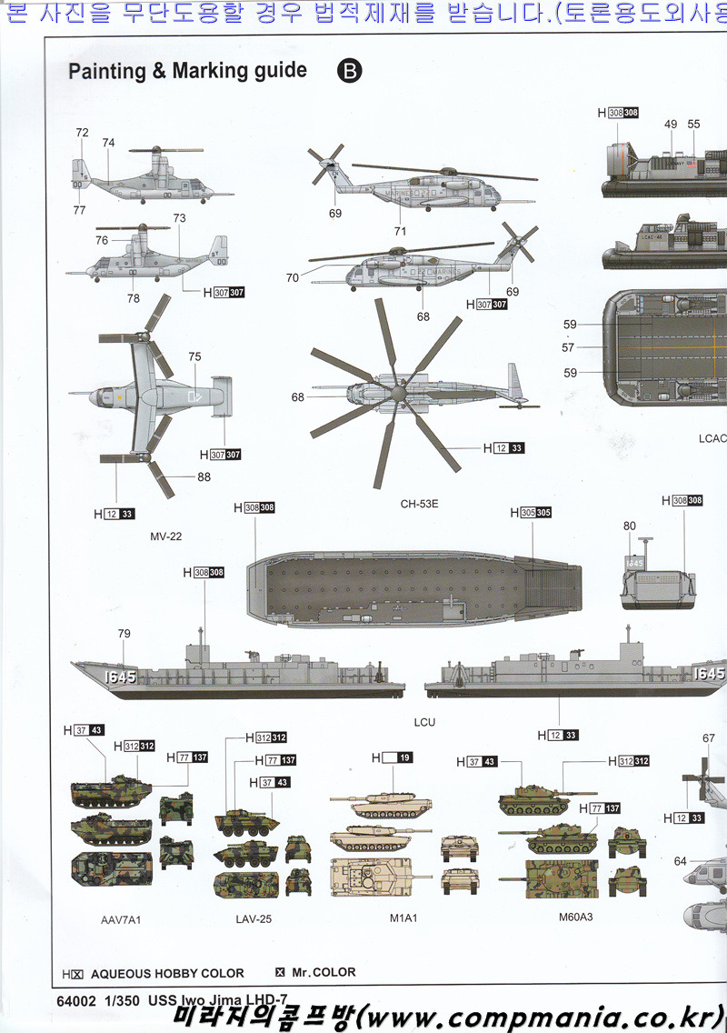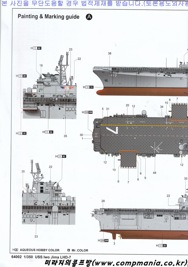 현존하는 최고이 강습양륙함인 LHD 와스프급의 두번째 바이레이션 제품인 LHD-7 이오지마호가 드디어 출시되었습니다. 이 제품은 앞서 소개했듯 미국의 모형회사 MRC가 설계했고 금형을 트럼페터에 의뢰해서 만들어진 제품입니다. 마치 과거 아카데미의 1/35 헬기와 같은 방법으로 제작된것인데요.. MRC 는 설계만 직접 하고 금형제작이나 제품제작을 공장이 있는 제3국에 맡겨 제작하는 방법을 많이 씁니다.