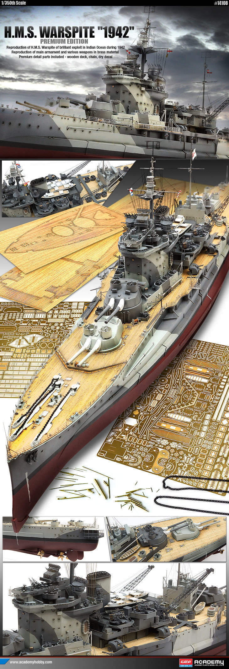 주말이라 찬찬히 웹검색을 하고 있던중 반가운 소식이 들어왔네요.. 아카데미에서 1/350 H.M.S. 워스파이트 "1942" 프리미엄 에디션' 을 발매한다고 합니다.