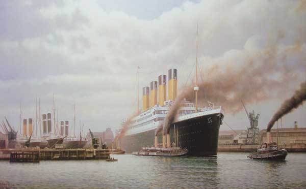 1912년 4월 10일, 영국의 사우샘프턴(Southampton)으로부터 타이타닉호는 첫 항해를 시작했다. E·J·스미스 선장과 승무원과 승객을 합쳐서 2,200명 이상이 승선하였다. 배가 항구를 떠날때, 실수로 정박되있던 뉴욕 호의 정박용 밧줄을 끊어버려 둘이 충돌할 뻔했던 사건(!)이 발생했다.프랑스의 셸부르(Cherbourg)과 아일랜드의 퀸즈타운에 기항한 후, 미국의 뉴욕 항구로 향했다.