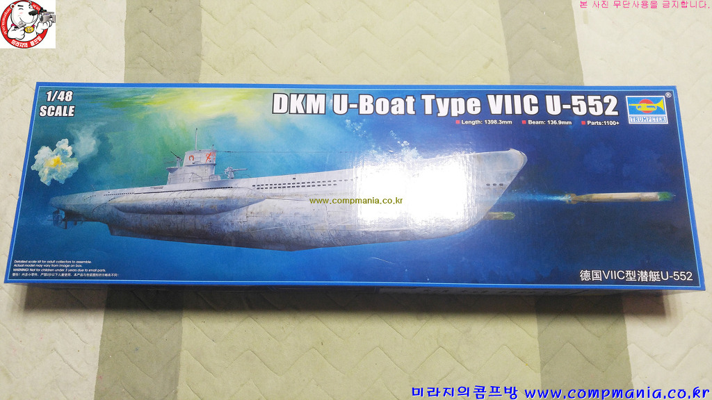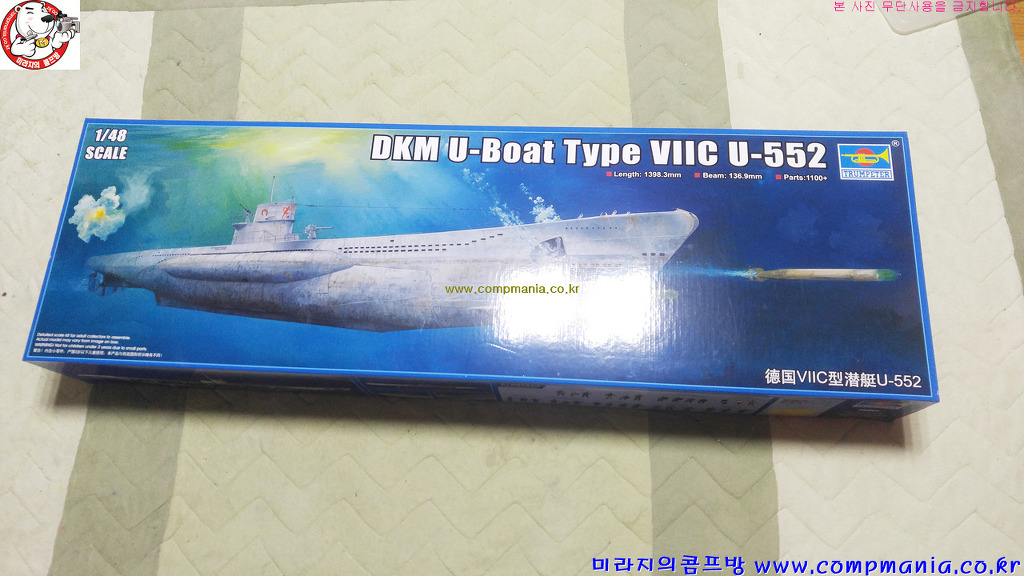 지난번에 살짝 알려드린 트럼페터의 대물 씨리즈인 제품의 #0680번 DKM U-Boat Type VIIC U-552 제품을 어렵게 구해 소개해드립니다.