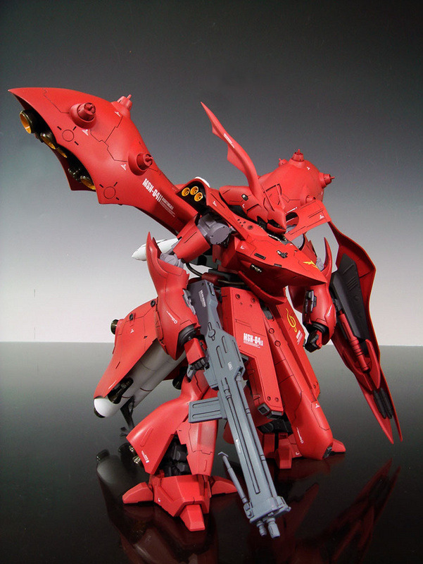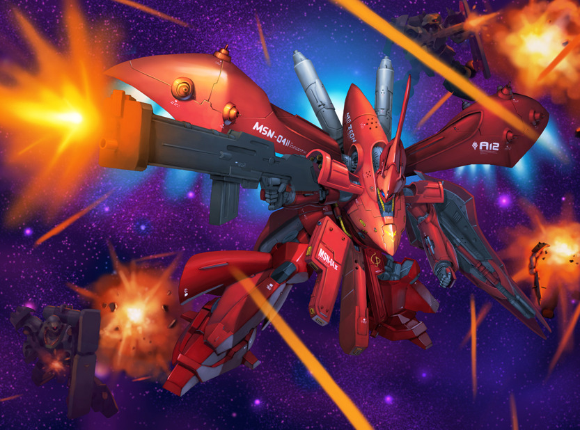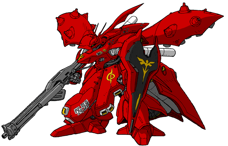MSN-04 SAZABI 사자비(サザビー) 높이 - 중량 - 30.5톤 출력 - 3960Kw 추력 - 133,000kg 재질 - 건다리움 감마 합금 (건다리움 합금 참조) 파일럿 - 샤아 아즈나블 디자이너 - 이즈부치 유타카 무장