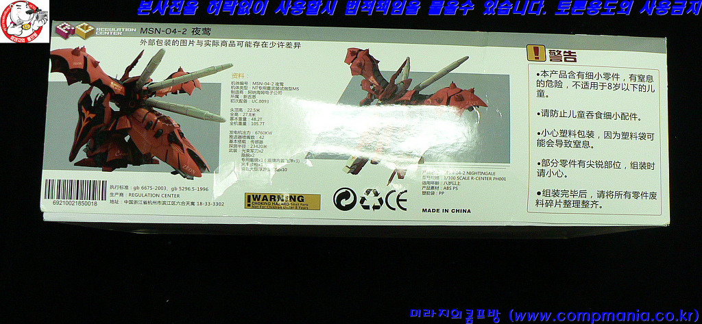 나이팅게일은 소설판에서만 등장하는 기체지만 독특한 외형과 소설에서 그분의 최후의 기체로 등장하기 때문에 큰인기를 끌어습니다. 결국 국내 개라지업체 네오그래이드에서 사자비 MG 킷을 이용하는 컨버젼 킷으로 출시되었죠..이번에 소개하는 제품은 이 제품은 카피한것으로 보입니다.