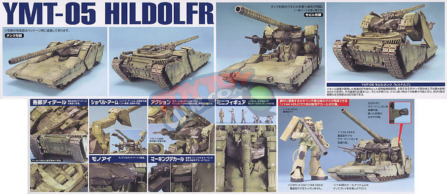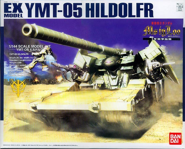 [YMT-05 Hildolfr(힐돌브) 는 지온군의 차기 주력전차로 개발된 프로토 타입중 하나로 300밀리에 달하는 전함용 주포를 장착한 최신의 전차였다. 하지만 이 기체가 개발될 당시 이미 주력병기는 MS로 넘어간 사정이라 시작기 한대만 제작되게 된다]