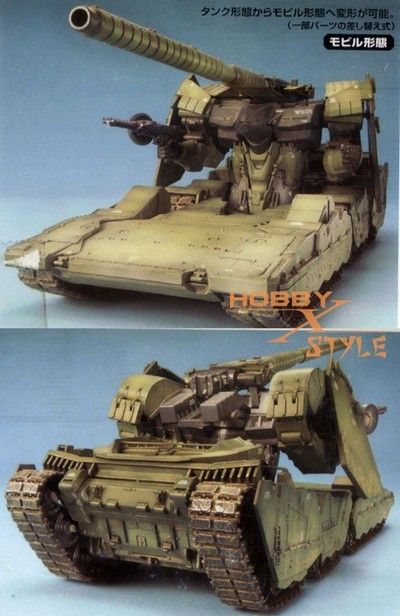 [힐돌브의 모델화로는 HG에 대응되는 1/144 스케일의 EX 모델로 상당한 퀄리티로 출시되었다. 프로포션을 위해 전차-모빌슈트간 변형은 몸통의 부품교체식. 덕분에 있는 쇼핑몰마다 비싼가격에도 불구하고 현재 죄다 품절이다. 2011년 초 시점에선 아키하바라에서 조차 구할 수가 없었다. 재고도 다 떨어지고, 이제 절판된듯 했는데 2011년 여름에 급 재발매... 모델러들의 지갑을 재차 탈탈 털었었다, 미라지도 그 피해자중하나.. 처박아뒀다..이제서야 리뷰올린다~~ 각오하라!!]
