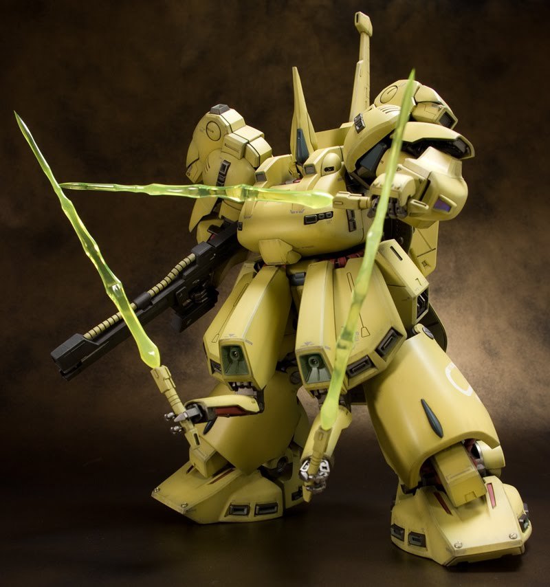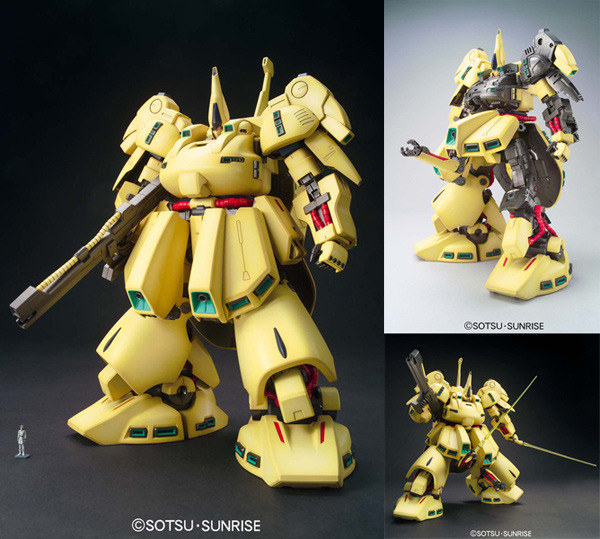 2000년대에 이미 액션 피규어인 MIA와 건프라인 HGUC로 발매되었으나[2] 작중 포스에 걸맞는 센세이션을 일으키지는 못한 것으로 평가된다. HGUC에 대해 간략히 요약하면 왠만한 HG는 가볍게 압도하는 덩치, 꼼꼼한 색분할[3], 튼튼한 관절강도, 신금형 빔파츠로 4도류 재현 가능 등의 특징이 있다.
