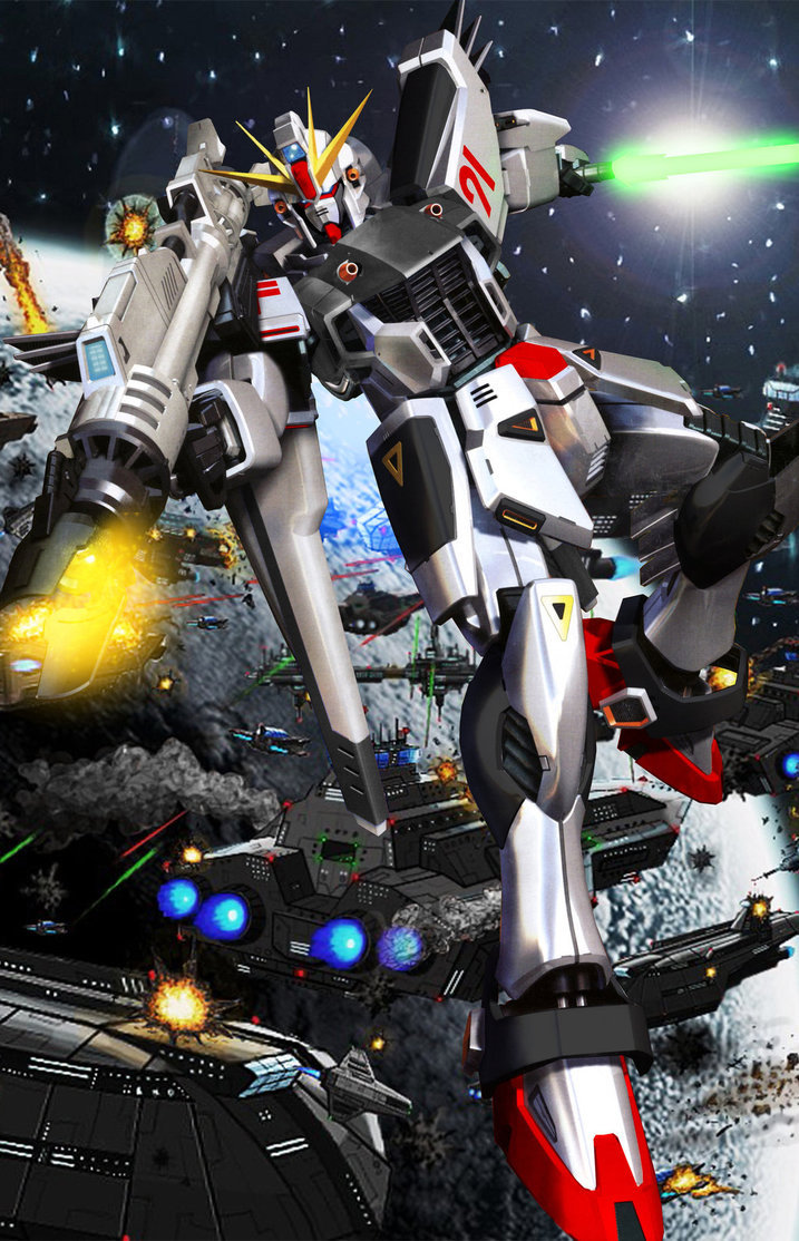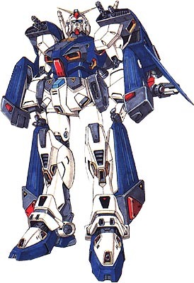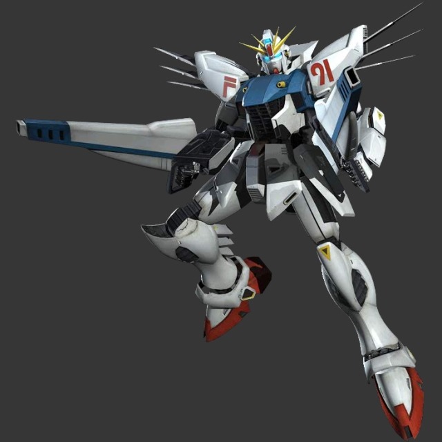 [빔캐논과 빔라이플 등으로 무장한 F-91 은 연방군의 표준무장을 장착하고 있지만 효율적인 무장으로 정평이 높은 기체였다]