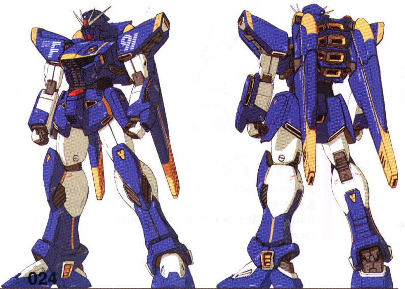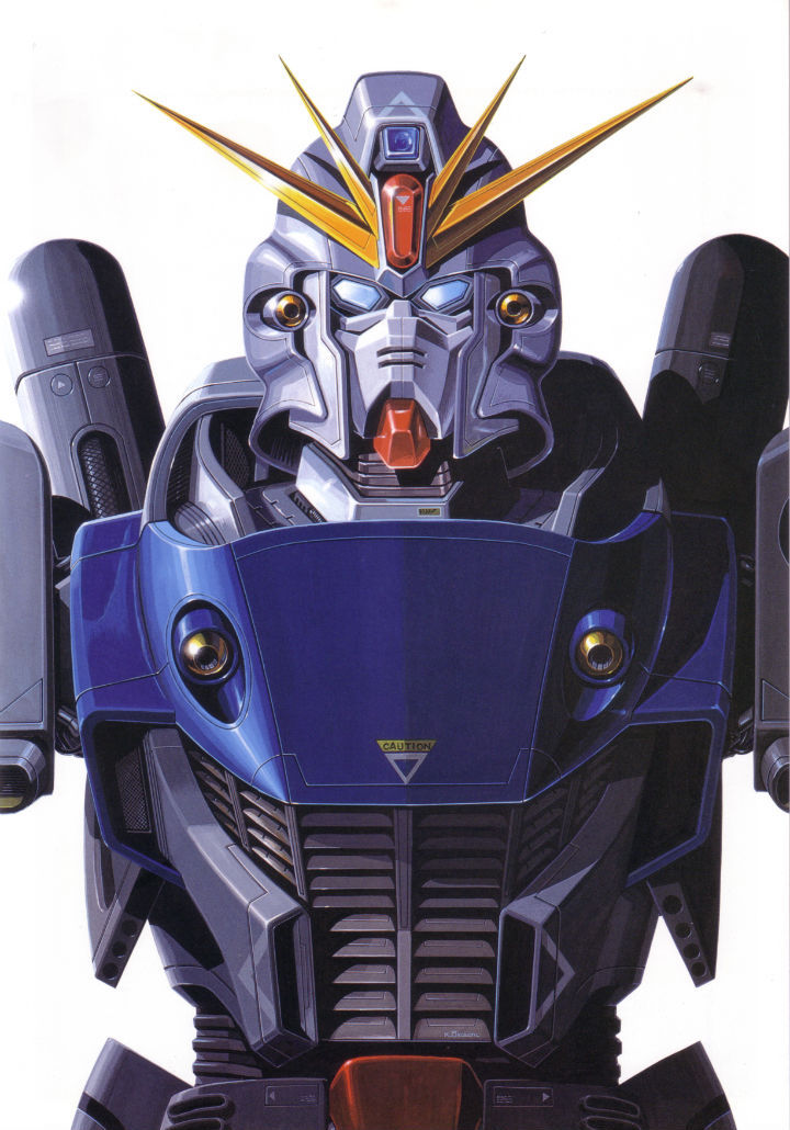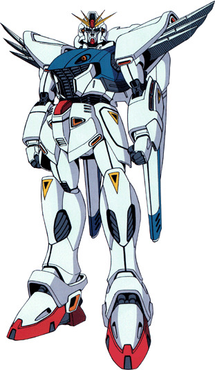 [F-91 의 디자인은 설계 는 훗날 후쿠다 감독에 의해 스트라이크 건담에 유용된다.]