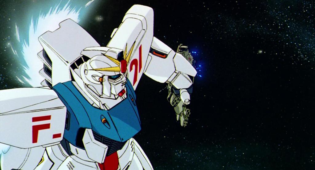 공기에 가까웠던 F-91과는 다르게, 한쪽 팔을 잃어버리긴 하지만 우주세기에 등장한 뉴타입 중 가장 좋은 대우를 받으며 히로인(세실리 페어차일드)을 구출하는 해피엔딩을 맞는다.]