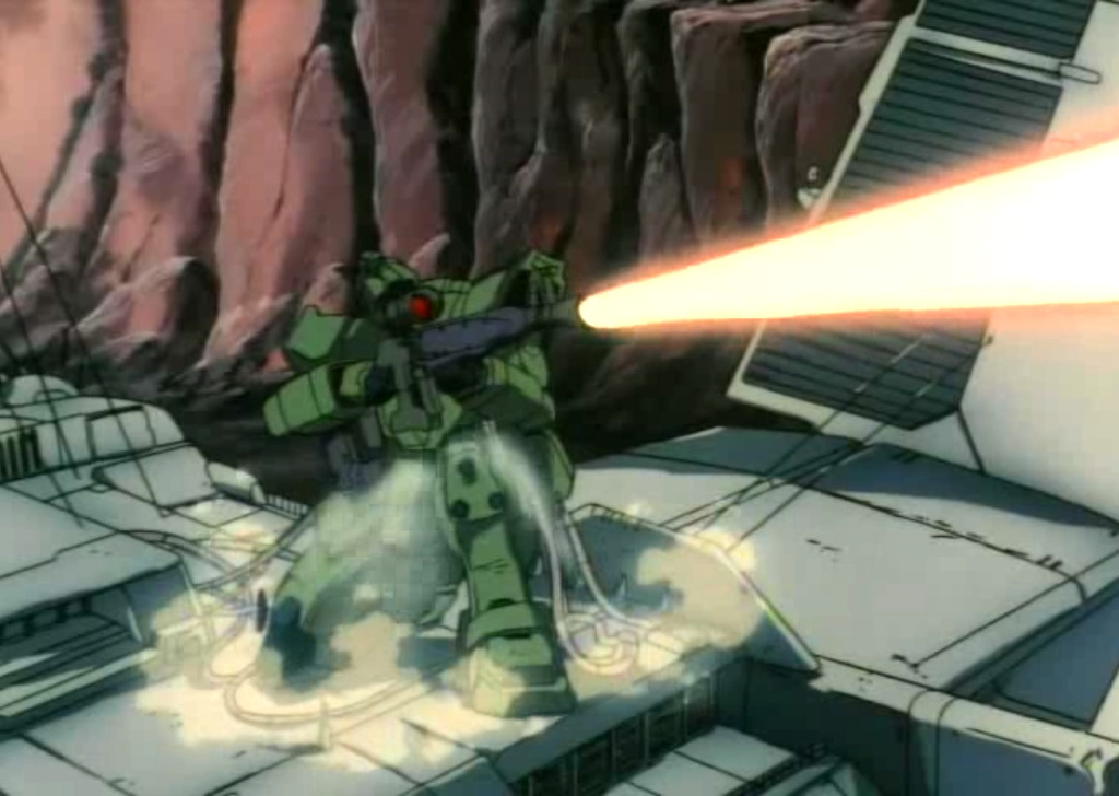 물론 누가 당하는 역 아니랄까봐, 극중에서는 딱히 인상적인 장면을 보여주진 못하고 적의 함정에 빠져서 터지거나, 아군의 높으신 분한테 야전용 핵폭탄으로 쓰이는 비참한 모습을 보여주기는 한다. 한참 뒤에 나온 중력전선에서는 대 MS 참호에 빠져서 허우적대다가 뻥, 다부데 포격에 뻥! 돔한테 뻥! ...하는 모습을 보여주기도 한다.