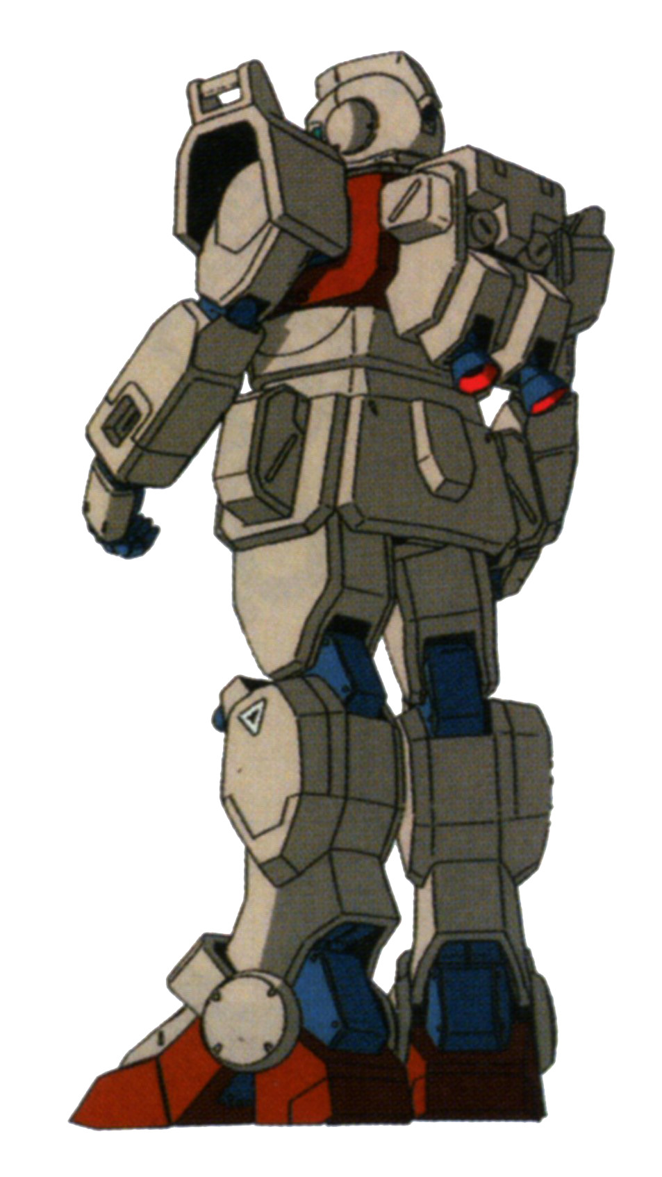 다시 말해서 '짐의 선행양산형'을 급한 대로 실전에 배치한 것이며, 이 시점에서 연방군한테 MS를 배치할 만한 곳이라고는 지구밖에 없다. 즉 기술적으로는 RX-78계열에 더 가까운 MS. 그렇기에 육전형 건담과는 부품 호환율이 무척 높으며, 실제로 카렌 조슈아의 기체가 앗가이의 기습으로 머리를 잃어버린 뒤에는 끝날 때까지 육전형 짐 머리를 달고 나왔다. 일명 짐헤드.