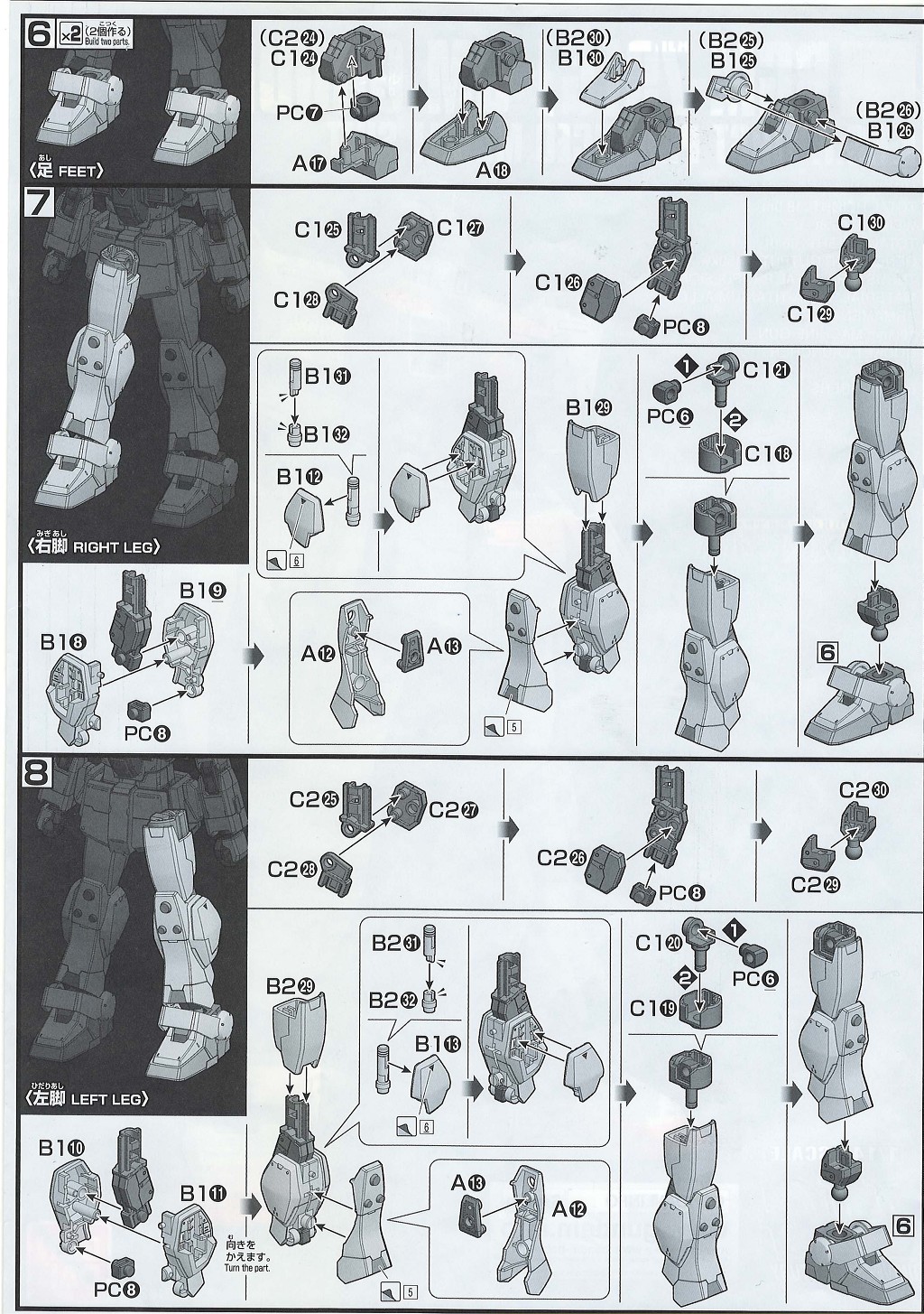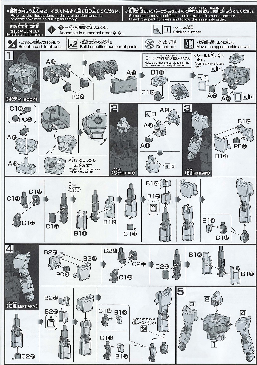 구판 1/144 HG는 800엔이라는 값에 빠방한 부속물[3]로 좋은 평가를 받았지만, HGUC로는 발매되지 않았고 H.G하드그래피 육전형 건담 세트에 머리만 두 개 동봉될 뿐이었다.