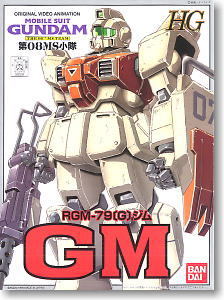 During the stalemate period of the One Year War, the Earth Federation Forces were play a fast game of catch-up on the introduction of mobile suits into warfare by the Principality of Zeon. One of their earlier prototypes is the groundpounding RX-79(G) Gundam Ground Type, based loosely on the original "Project V" prototype RX-78-2 Gundam operating elsewhere during the war. From the RX-79(G) comes another experimental unit, intended for mass-production. Called the RGM-79[G] GM Ground Type, it uses 80% of the same parts as its RX-79(G) predecessor, as well as its extremely durable Luna Titanium alloy armor, and its ability to use beam rifles, but is more powerful yet cheaper to produce.