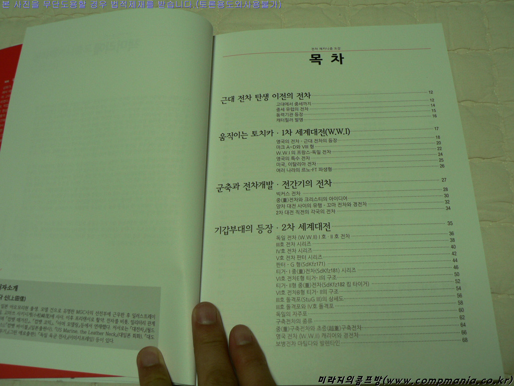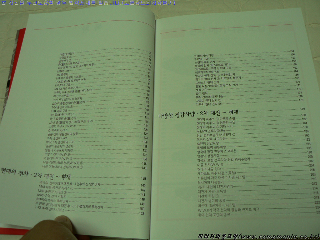 이 책 역시 전차에 대해 고대전차부터 현대 전차까지 일목묘연하게 정리한 내용으로 대체적인 내용은 앞서 소개한 '독일육군전사 (獨逸陸軍戰史/WEHRMACHT)' 의 형식을 띠고 있습니다. 다만 차이라면 앞서 소개한 '독일육군전사 (獨逸陸軍戰史/WEHRMACHT)' 가 독일군 전차위주로 기술되어 있다면, 이 책은 고대 전차부터 시작하여 1차대전 당시 호라약한 전차 그리고 2차대전 전차들 영국군전차 라던지 미군전차 프랑스군 그리고 소련군등 그리고 전후 개발된 전차들과 최신의 전차까지 전차에 관한 모든 내용을 집대성한 내용의 책이라 하겠습니다.