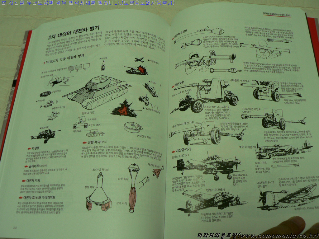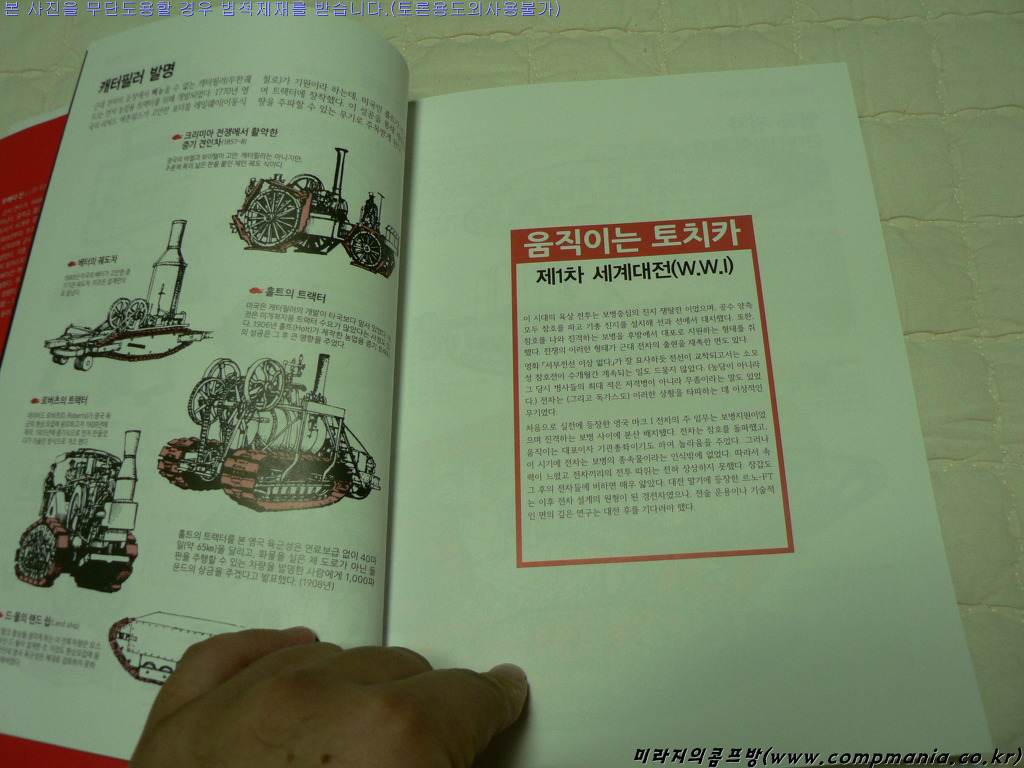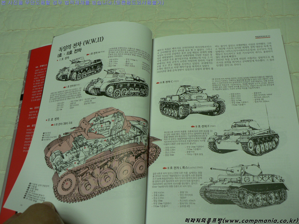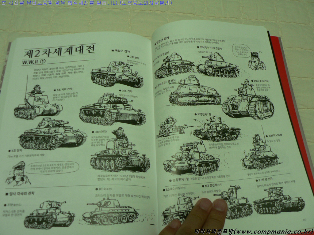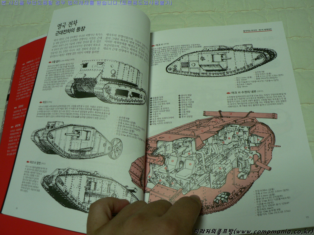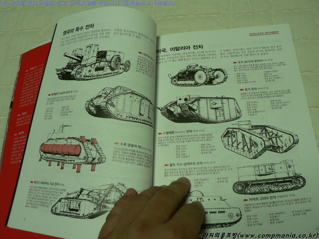 책 내용은 역시나 그림위주로 시원하게 설명하고 있으며 전차 개발과 역사에 관한 방대한 내용이 290페이지에 거쳐 경쾌하게 소개되어 있습니다. 여기에는 최초이 전차개발국인 영국제 전차부터 시작해서 전차를 위협적인 무기로 완성한 독일군 전차들 그리고 독일의 막강한 전차군단에 맞서 승리한 소련의 전차들과 미군의 전차 역사까지 한권의 책에 모두 들어 있습니다.