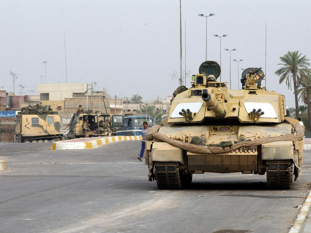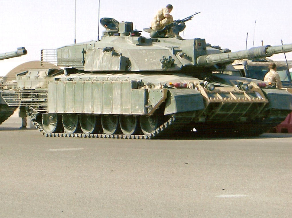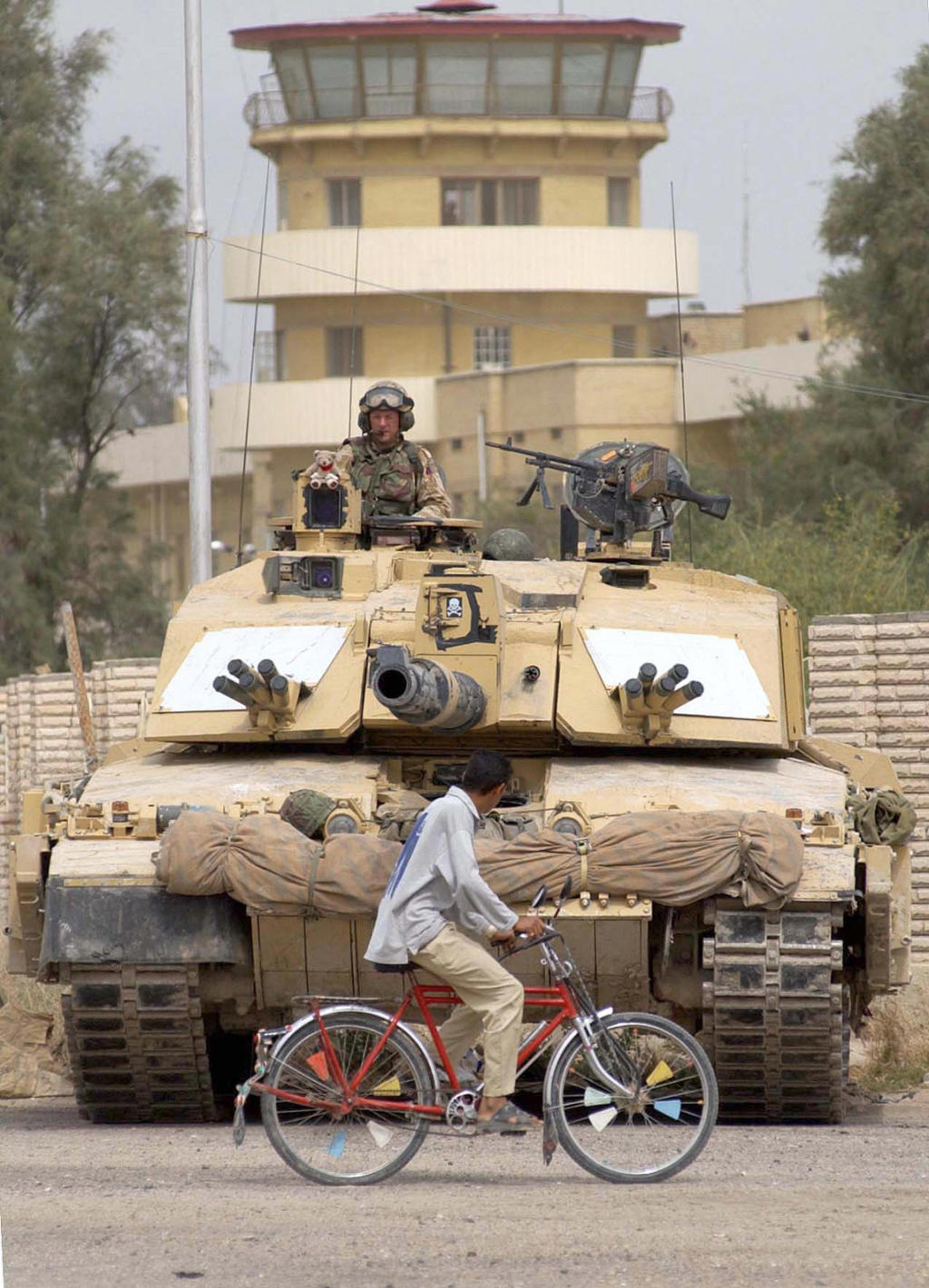 [이라크의 바스라(BASRA)시에 주둔중인 Challenger 2 전차와 그를 바라보는 현지 이라크인 의 모습이 대비적이다. Challenger2 전차는 IED 등의 피해가 컸던 미군 전차에 비해 피해가 적어 영국군의 개발전략(속도를 희생하더라도 높은 방호력을 추구하는 )이 유효했음을 잘 보여주는 계기가 되었다]