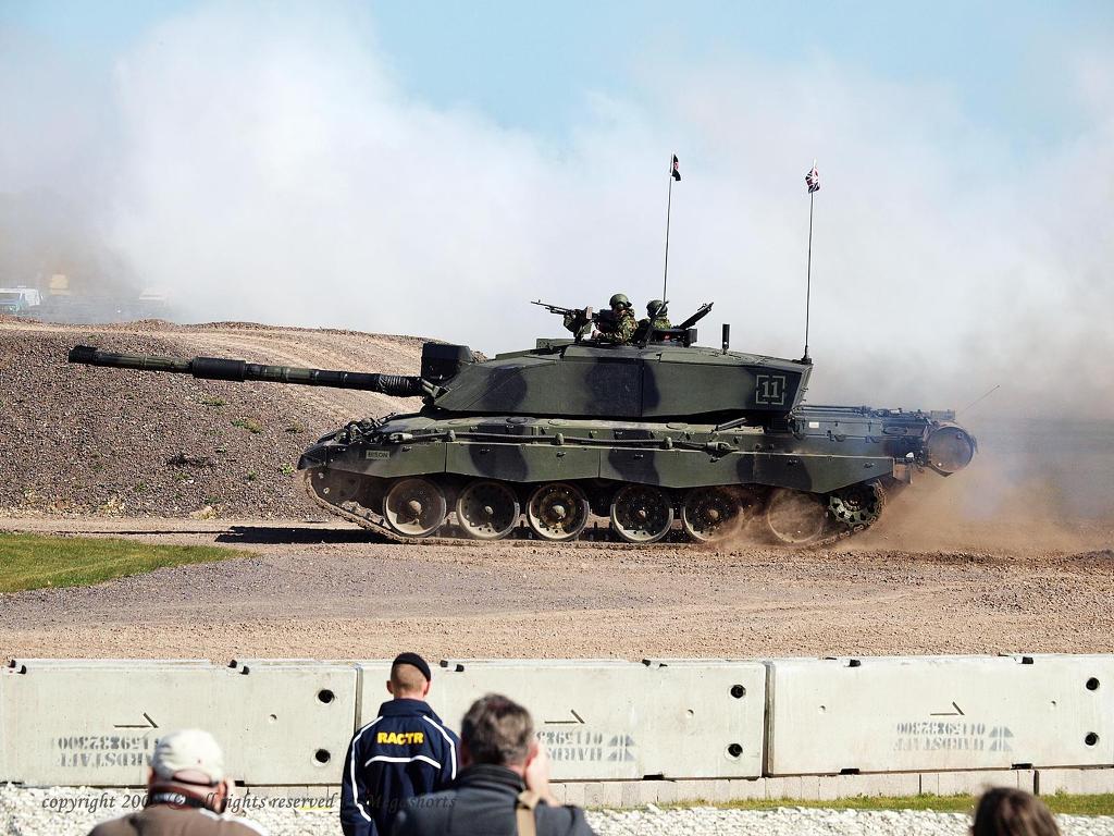[엔진의 매연을 이용 스모크를 발생시키며 기동시범을 보여주는 챌린져 전차 현재 영국군과 오만군에 약 300여대의 챌린져2 전차가 운영되고 있다]