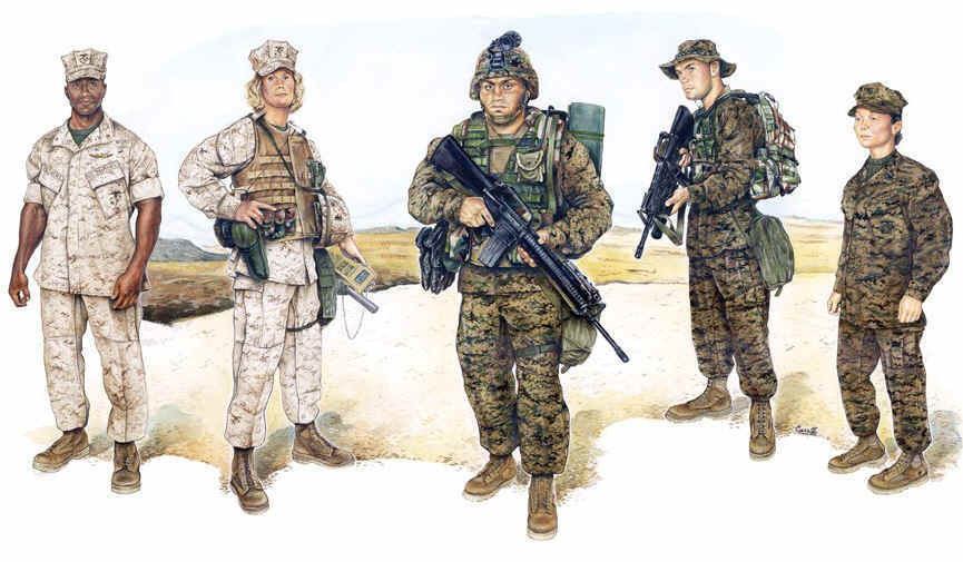 [사막 마팻 전투복을 입은 미해병대의 모습]