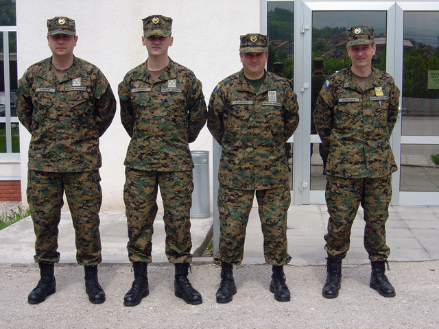 [마펫 전투복을 착용한 미해병대 장교들.. 이 신형전투복은 해병대로서의 긍지를 주는 목적으로도 제작되었는데 멋진 위장무늬의 이 전투복은 육군의 전투복과 구분되는 해병대의 자존심을 보여주는 군복이기도 했다. 이느 해병대를 지원하려는 젊은이들의 마음을 사기위한것도 어느정도 채용되었다고 한다]
