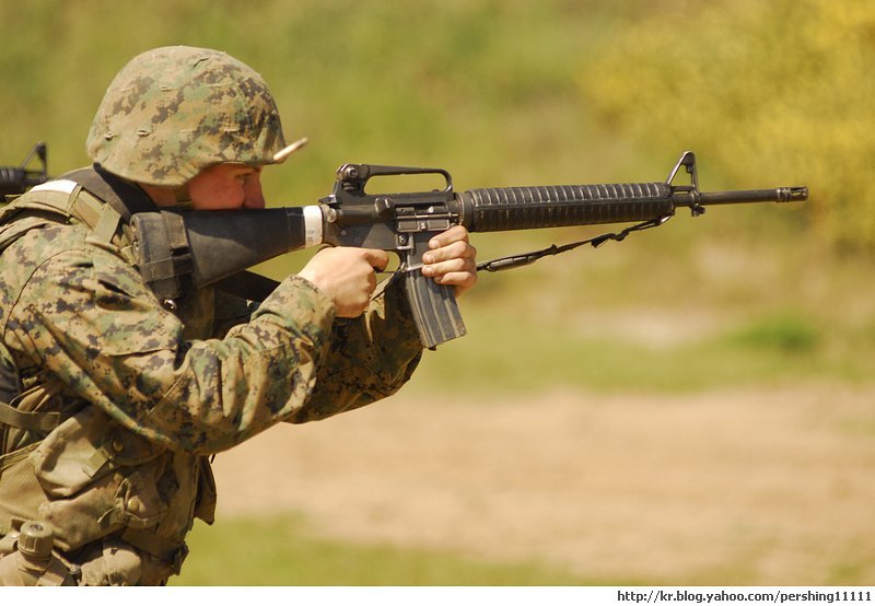 [미해병대가 제식소총으로 20년 동안 운영해오고 있는 M16A2 이는 베트남전부터 애용해온 M16 의 직계타입으로 짧은 카빈타입을 제식소총으로 운영중인 미육군과는 달리 미해병대는 여전히 M16A2 를 제식소총으로 사용하고 있다]