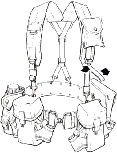 난 30여간 미군에 쓰여온 대표적인 장비품으로 H형태의 서스펜더와 탄띠 그리고 탄입대와 잡낭으로 구성된
