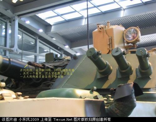 [포탑주위에는 3발씩 연막탄이 장착되어 있어 필요시 단발 혹은 동시 발사가 가능해 연막을 발생시킬수 있는것으로 알려져 있다]